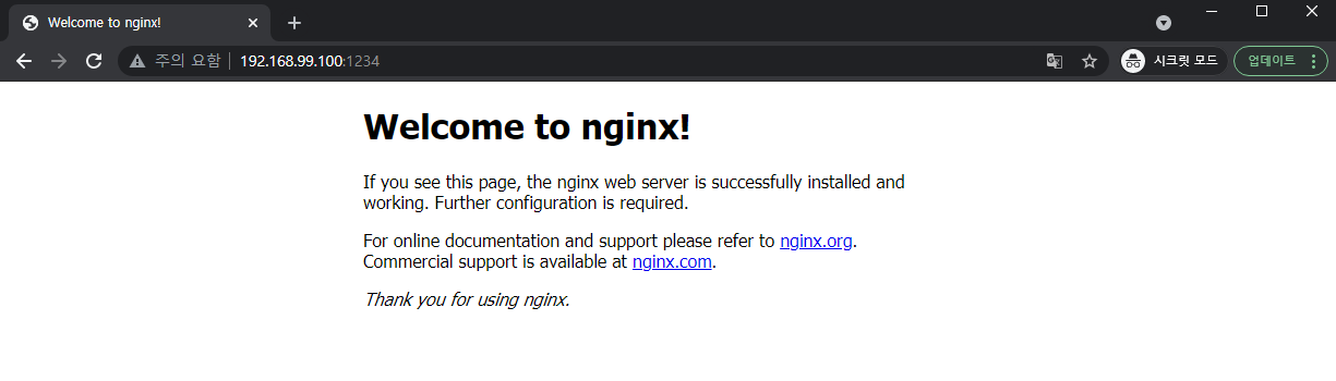 로 ip를 구해서 열었던 1234외부포트로 접속하면..