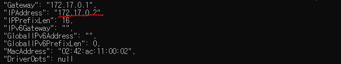 위 명령어로 container의 IP 주소를 볼 수 있습니다.