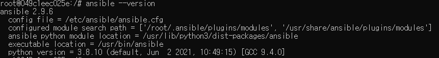 그리고 ansible server container의 내부로 들어가서